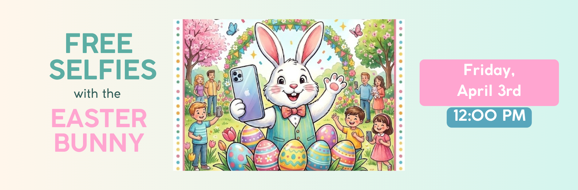π Date: Friday, April 3rd: Free Selfies with the Easter Bunny, 12 noon to 5 pm... Read More